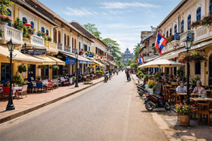루앙프라방 유러피안 거리는 프랑스 식민지 시대의 건축 양식이 남아 있는 거리로, 유럽풍 건물과 라오스 전통 분위기가 어우러진 이국적인 장소다.